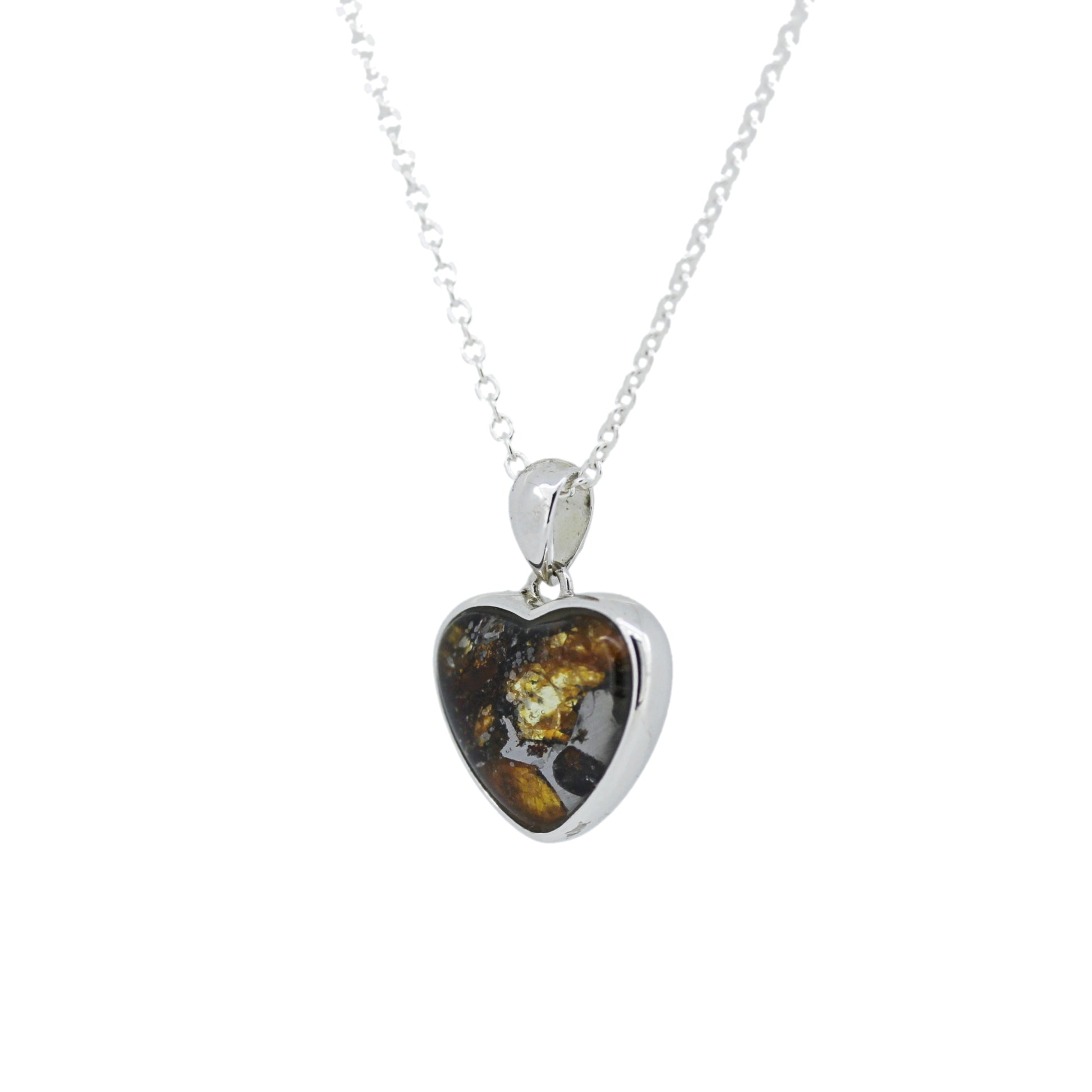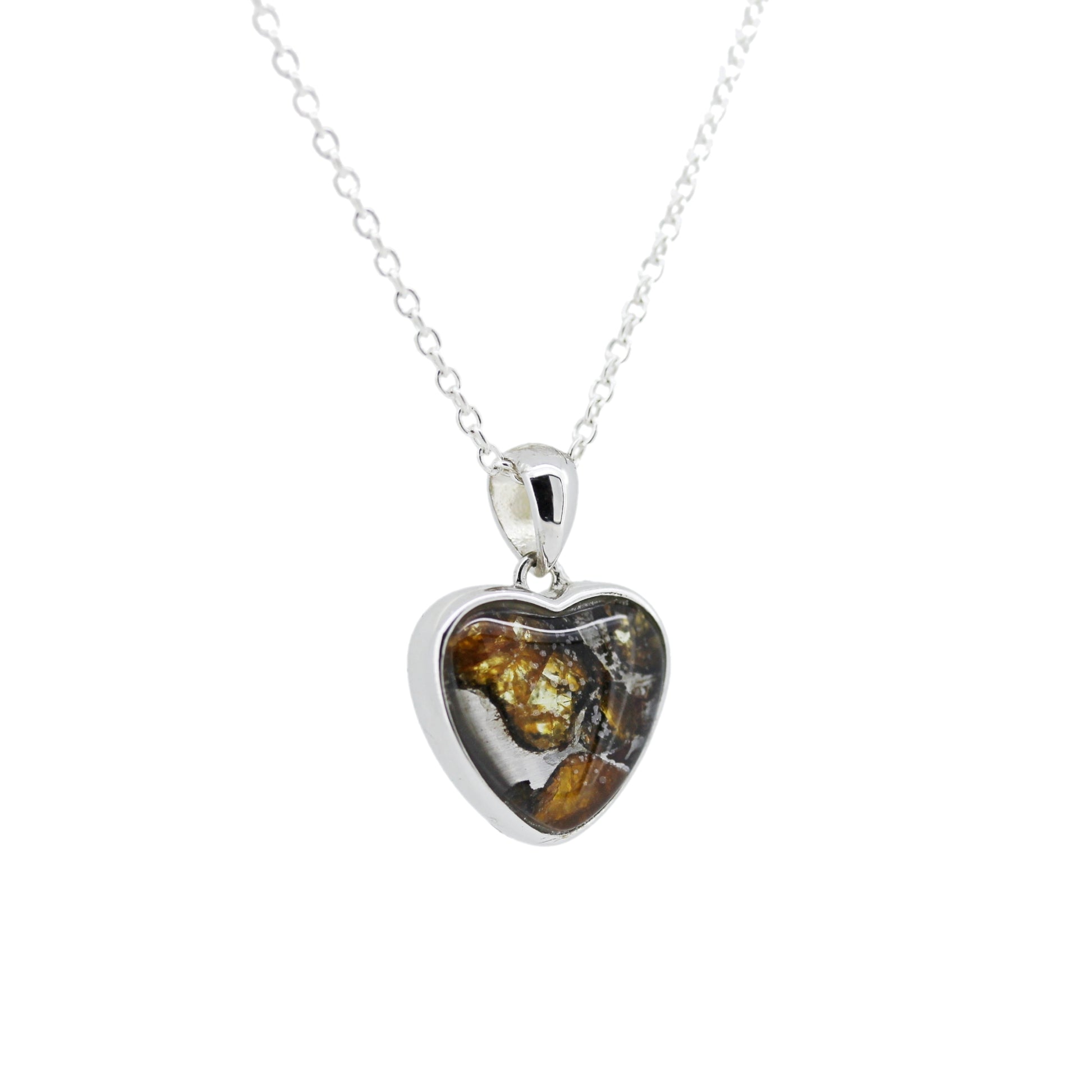 ケニア共和国産セリコで発見されたパラサイト隕石をハート型に加工を行い、シルバーペンダントにしました。