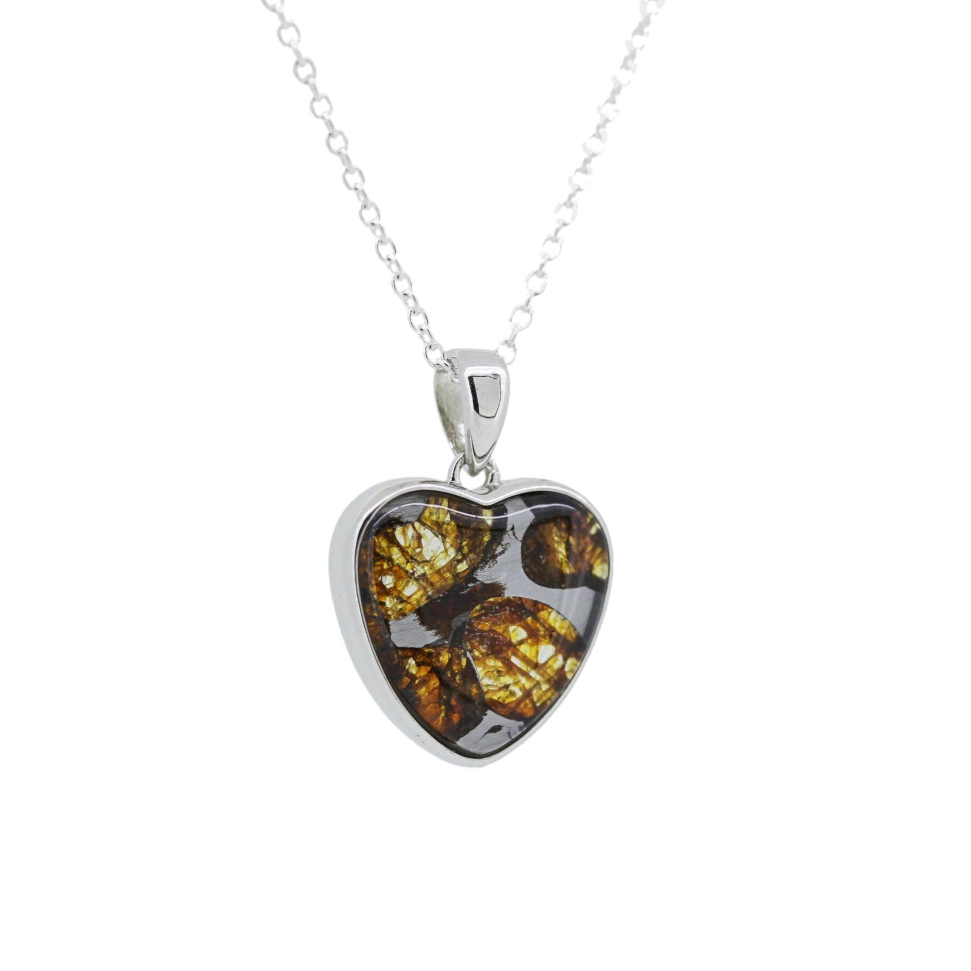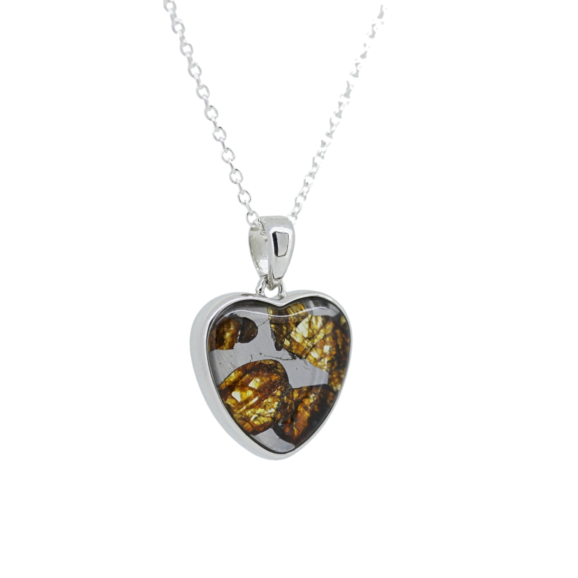 ケニア共和国産セリコで発見されたパラサイト隕石をハート型に加工を行い、シルバーペンダントにしました。