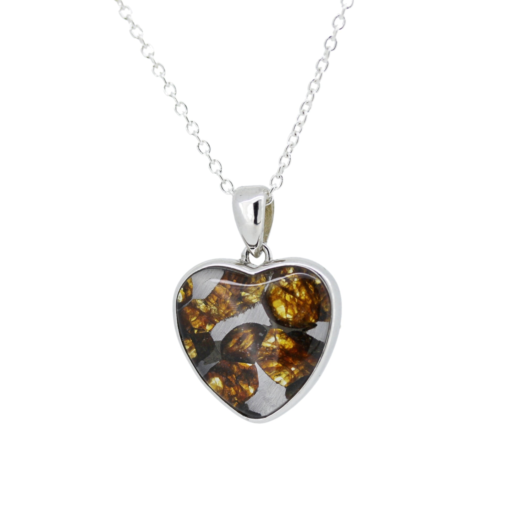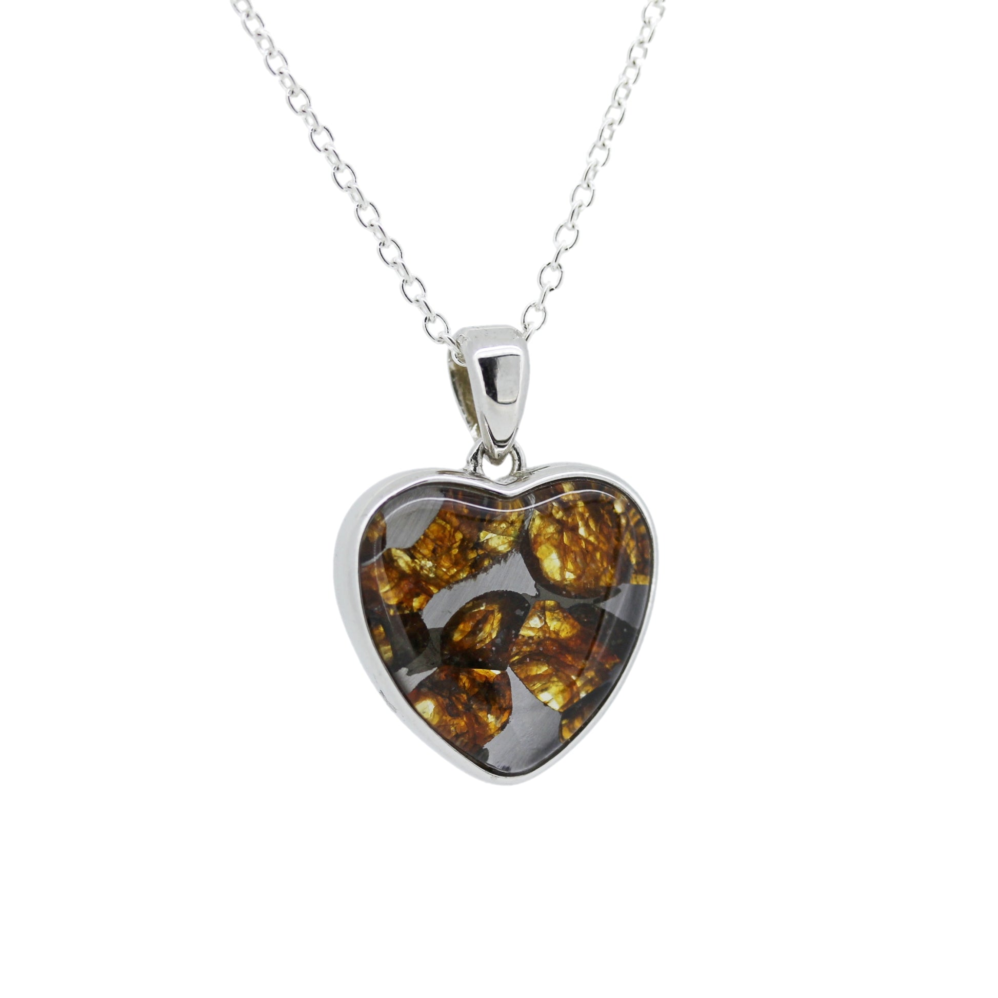 ケニア共和国産セリコで発見されたパラサイト隕石をハート型に加工を行い、シルバーペンダントにしました。