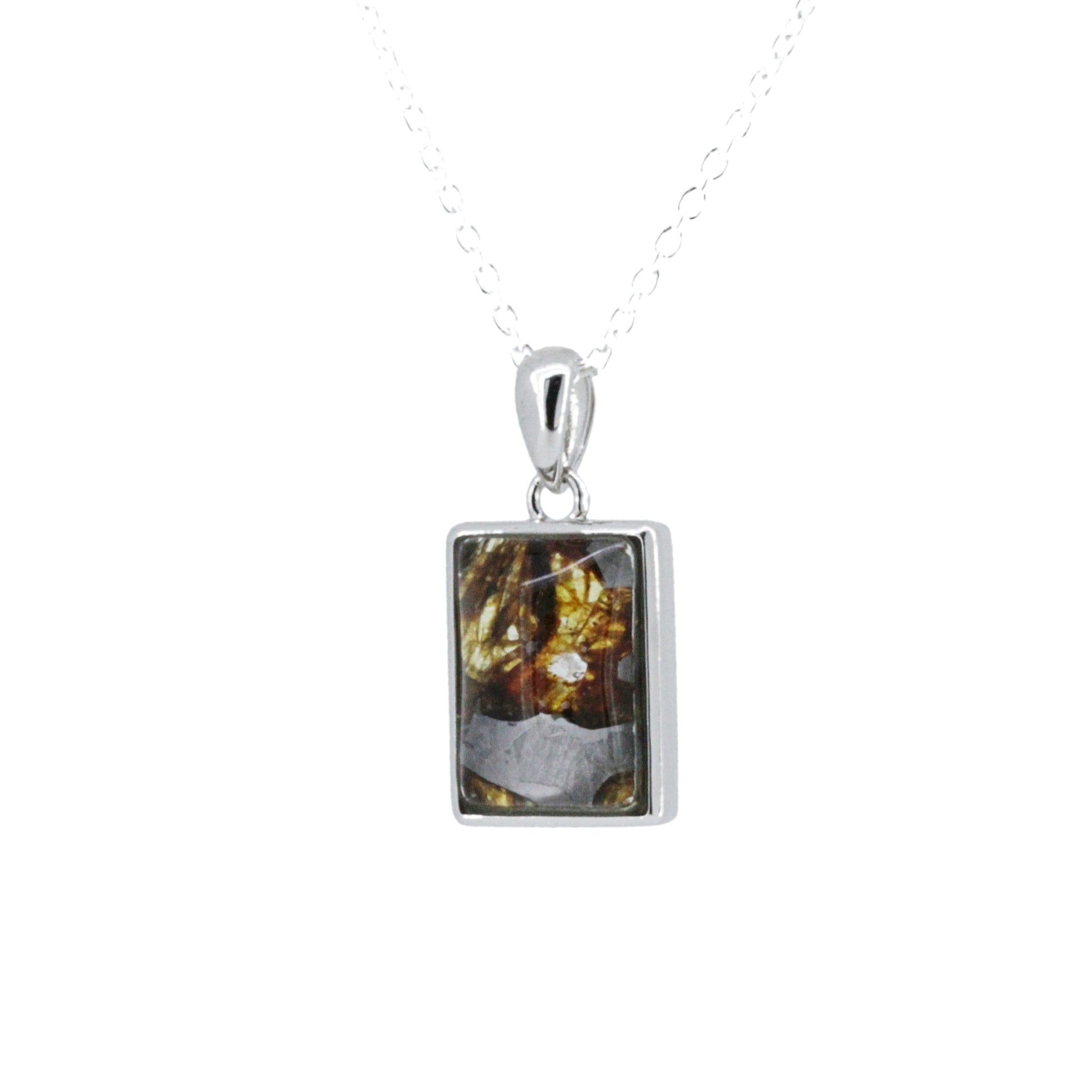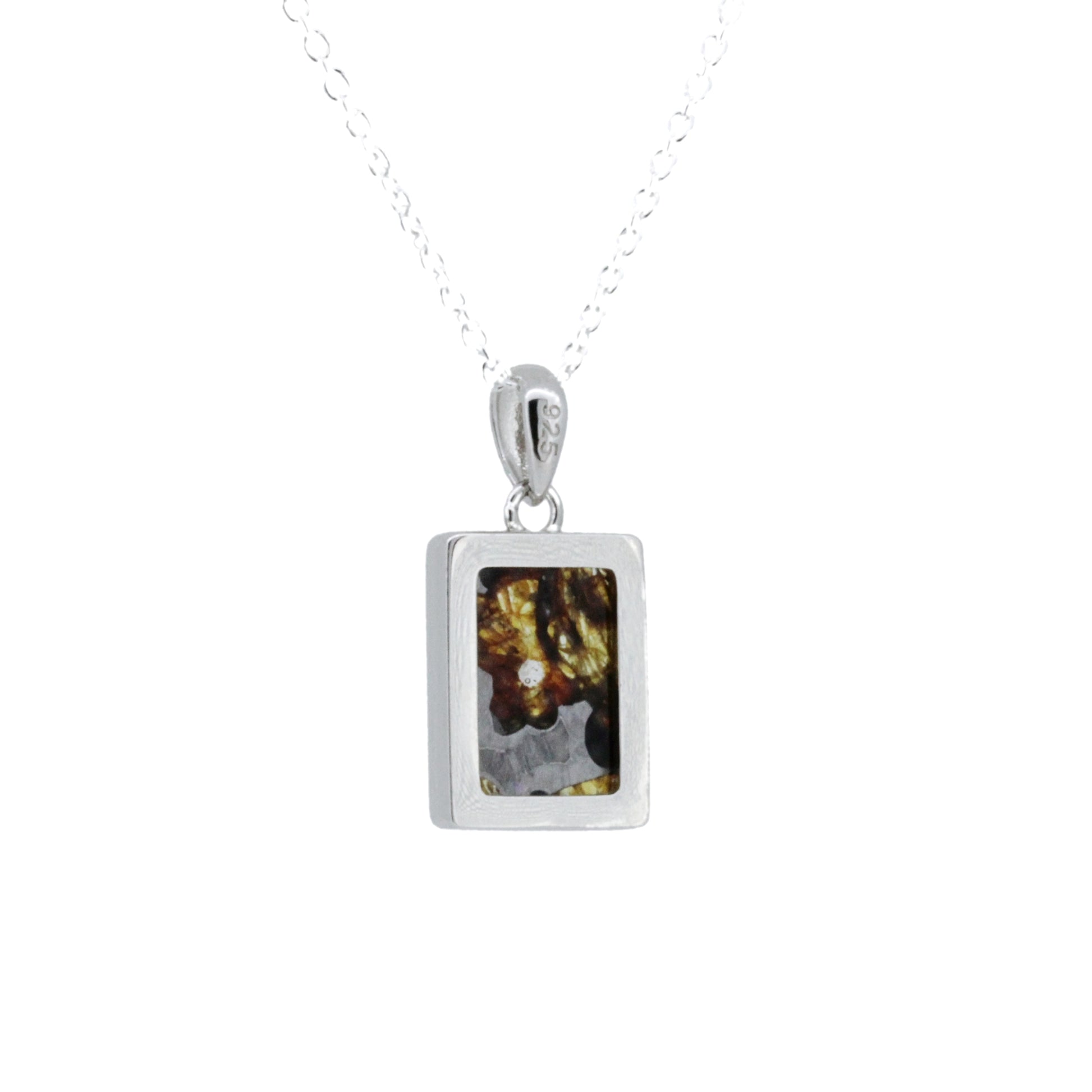 ケニア共和国産セリコで発見されたパラサイト隕石をレクタングル型に加工を行い、シルバーペンダントにしました。