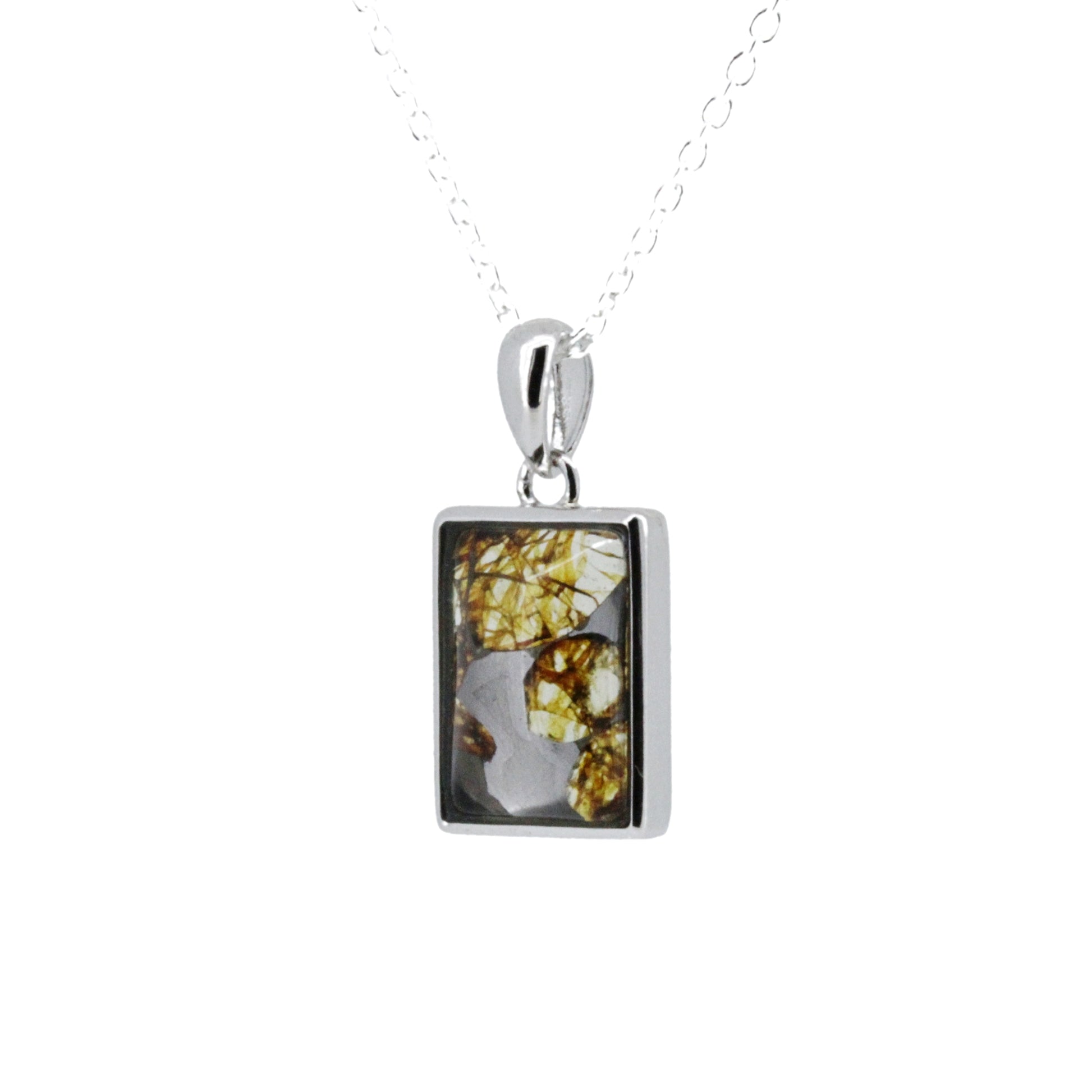 ケニア共和国産セリコで発見されたパラサイト隕石をレクタングル型に加工を行い、シルバーペンダントにしました。