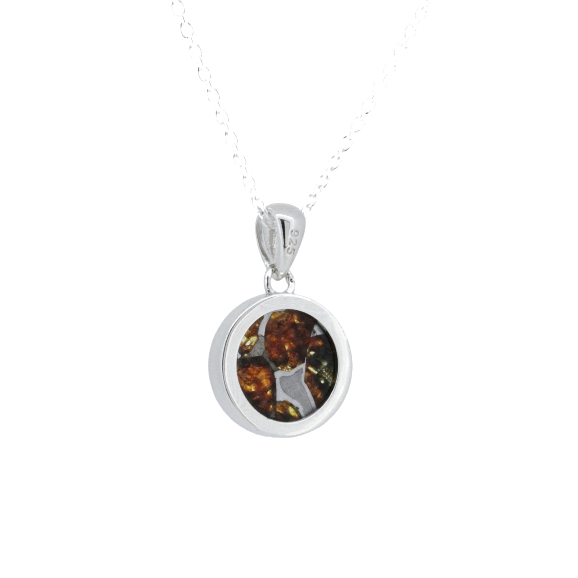 ケニア共和国産セリコで発見されたパラサイト隕石をラウンド型に加工を行い、シルバーペンダントにしました。